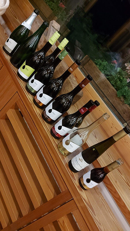 Északról délre indultunk a második napon, a Koch Borászatnál Koch Pálma várt bennünket zseniális, szűretlen, Chardonnay extra brut methode traditionnelle pezsgőjükkel. Jó volt megismerni a Hajós-Bajai borvidék pezsgős oldalát, azt, hogy ez a vidék is mennyire alkalmas ehhez a stílushoz. A pincészetnél zajló tervekről, a generációváltás, generációk egymás mellett való munkálkodásáról, továbbá villányi projektjükről is mesélt Pálma, miközben a tíz tételes borsort kóstoltuk. Számomra az egyik legérdekesebb a saját maguk által kifejlesztett technológia, a „boldog szőlő” szőlőművelési mód, mely során a sylvoz művelésre jellemző szálvessző lekötés után a vegetációs időszakban a szőlő szabadon nőhet és tetszőleges irányba kapaszkodhat a támrendszeren, nagyméretű, szellős lombfalat kialakítva. Szüret előtt egyszer csonkázzák az ültetvényt, ezzel is sok kézimunka erőt takarítanak meg. Pálma elmondása szerint ez a módszer náluk bevált, egészségesek és erősek az ilyen módon nevelt szőlőtőkék.